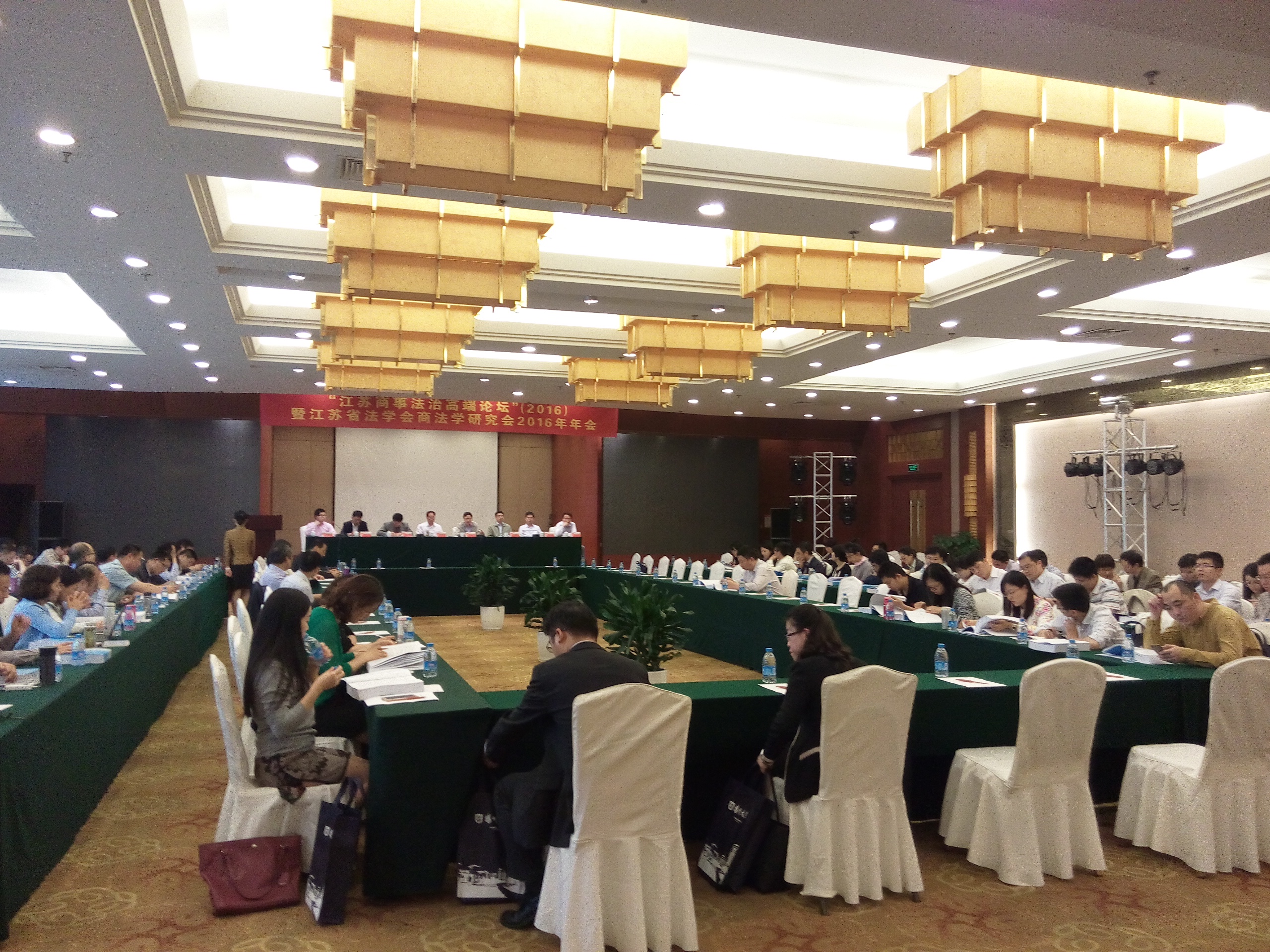 6月3日,“江苏商事法治高端论坛”(2016)暨江苏省法学会商法研究会2016年年会在扬州召开。会议开幕式由耽美漫画 院长、江苏省法学会商法学研究会副会长兼秘书长王建文教授主持。江苏省法学会副会长刘克希(正厅长级)出席会议并代表省法学会讲话。扬州大学副校长陈亚平,江苏省法学会商法学研究会会长、南京大学教授范健分别致辞。出席会议且担任会议单元主持人的江苏省法学会商法学研究会副会长有:江苏省人大常委会法工委副主任王腊生(正厅长级)、江苏省高级人民法院审委会专职委员李后龙、中国银监会江苏监管局副局长丁灿、中国证监会江苏监管局副局长凌峰、中国保监会江苏监管局副局长王宝敏、南京仲裁委员会秘书长夏鸣。江苏省高级人民法院民二庭庭长夏正芳、南京市中级人民法院副院长姚志坚、盐城市人民政府法制办主任兼盐城仲裁委员会秘书长戴红春分别做会议主旨发言。另外,还有来自省内各高校、研究机构、法律实务部门的专家学者100余人参加会议。