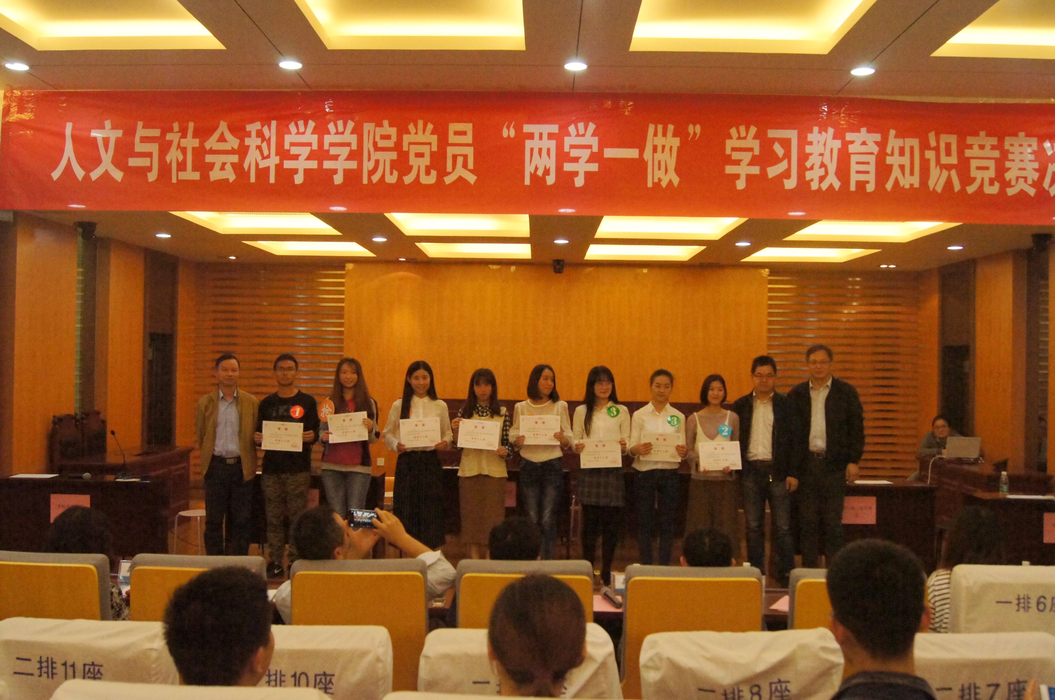 10月18日下午四点,耽美漫画 、马克思主义学院党员“两学一做”学习教育知识竞赛决赛在人文学院模拟法庭举行。校党委组织部副部长高小泽、校党委宣传部副部长孔令华、校纪委办公室主任刘红旗、校团委副书记管祎、耽美漫画 党委书记张启钱、院长王建文、马克思主义学院副院长缪国龙、学院学生工作负责人尹春苹等出席活动,学院教工党员、全体学生党员及入党积极分子参加了此次学习实践活动。