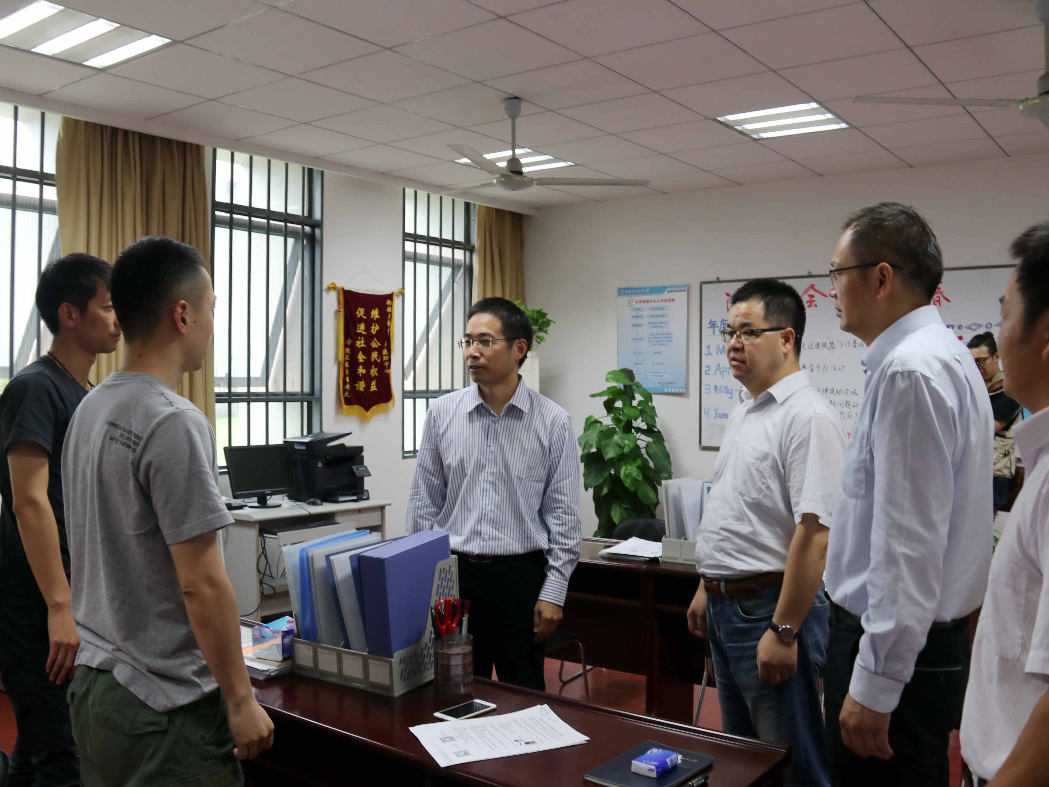 揭牌仪式之后,杭育新一行参观了法律援助中心办公地点和接待室。