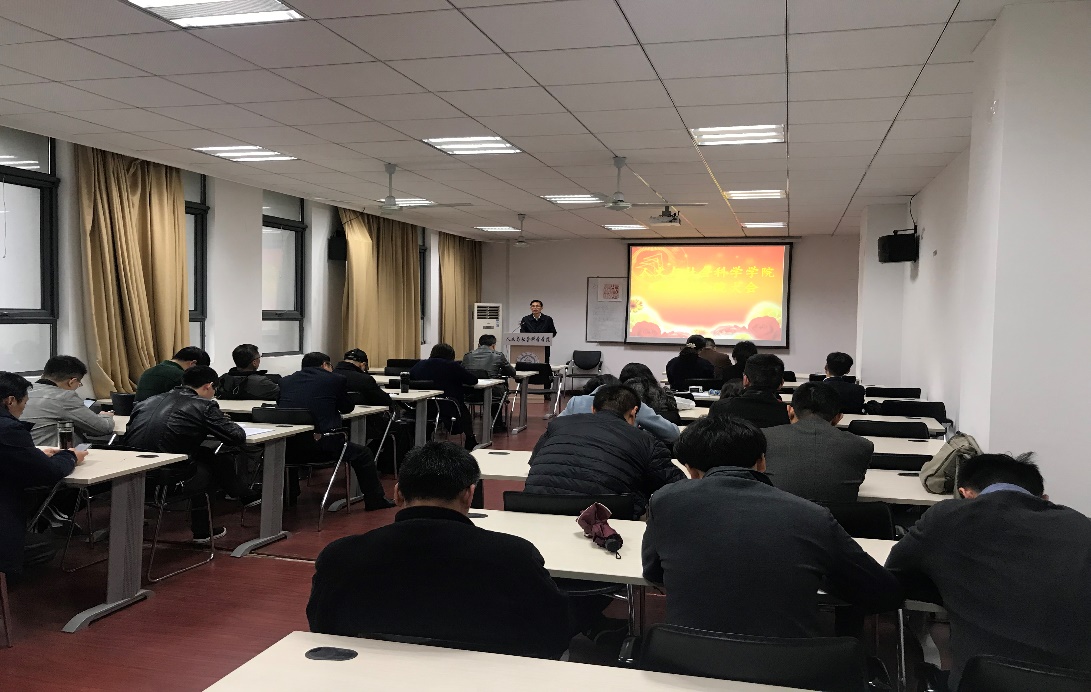 随后,刘虎从政治建设、组织建设、制度建设、党风廉政建设、工会、共青团与统战工作及发挥党员先锋模范作用、干事创业精神等七个方面对学院党委2019年工作进行了部署。他指出,2019年是学院加强基层党组织建设的巩固提升年,要进一步发挥党组织在综合改革和发展建设中的作用,努力彰显人文特色,打造党建特色工作名片。同时学院要全面落实教育思想大讨论总结大会精神,围绕“立德树人”根本任务,紧抓发展重点,积极营造风清气正、团结和谐、凝心聚力、务实进取的发展环境,不断增强师生的荣誉感、归属感、幸福感,强化以文化人、以文育人成效。
