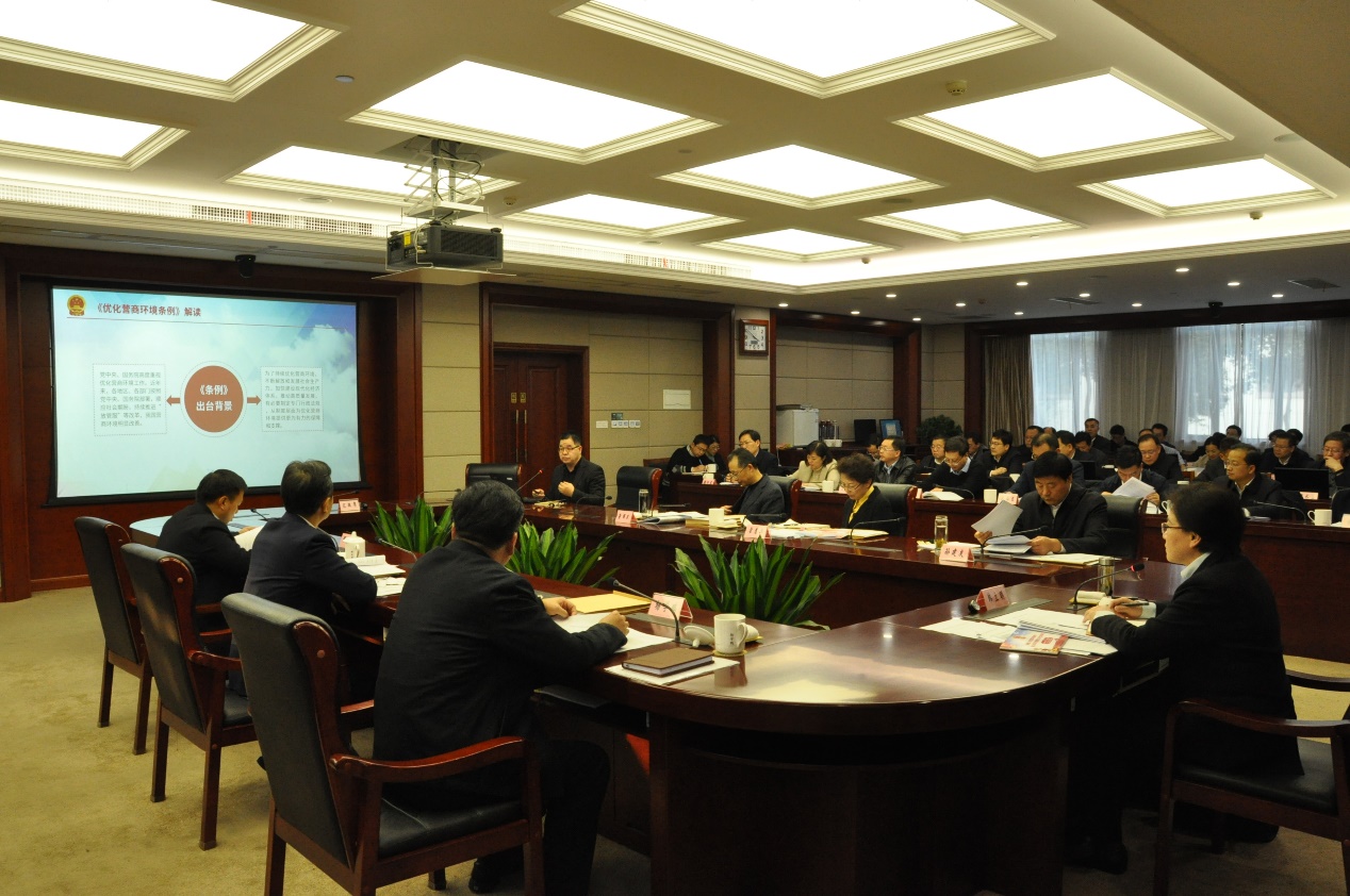 12月5日下午,市政府第54次常务会议安排专题法治讲座,邀请耽美漫画 院长、博士生导师王建文教授就国务院颁布的《优化营商环境条例》进行解读。市委副书记、代市长韩立明主持会议并讲话,市政府组成人员、各区政府、江北新区和市各相关部门主要负责人参加。