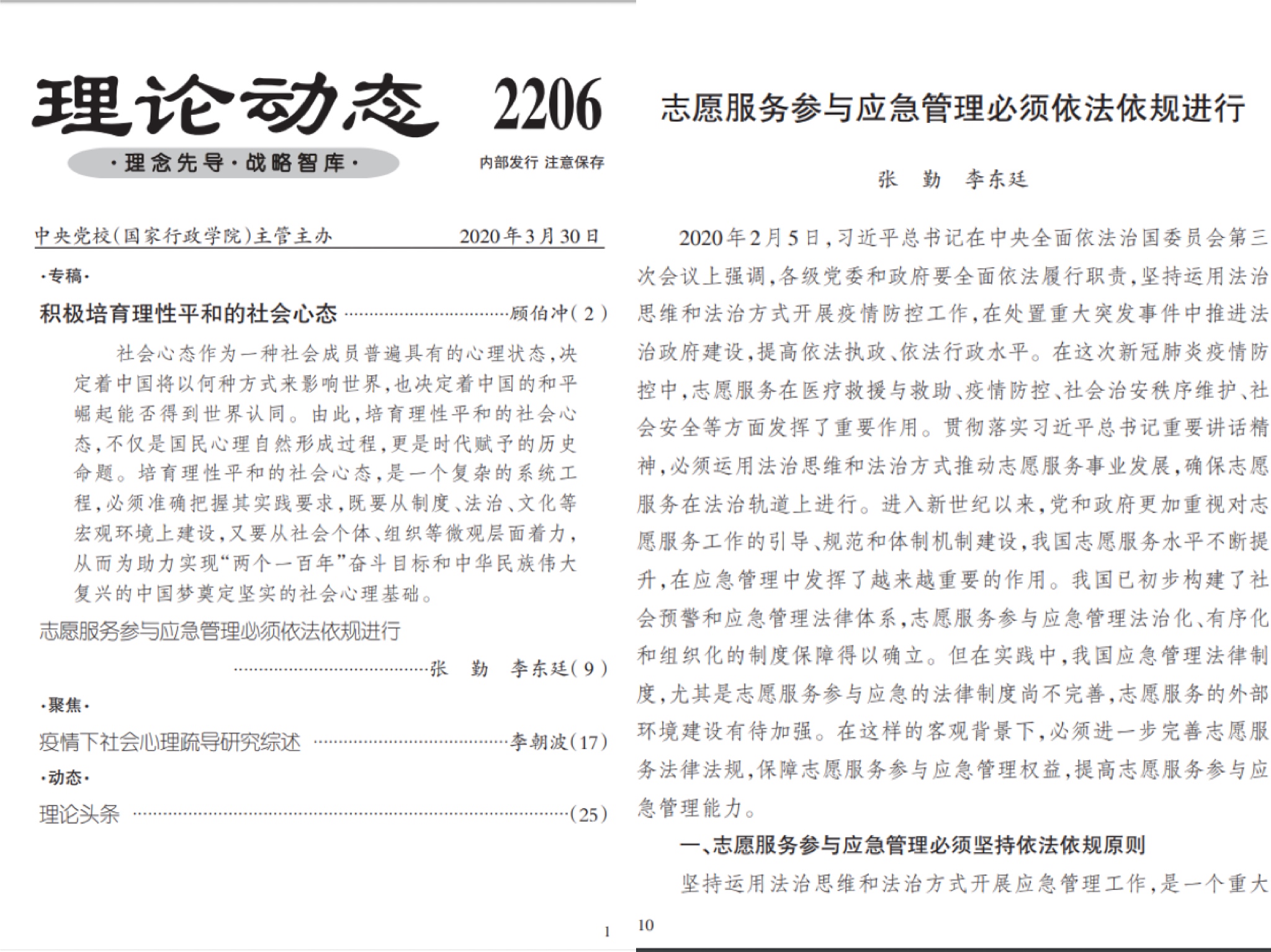 我院师生在全力落实上级部门及学校抗疫部署的同时,积极利用“宅”家时间,以问题为导向,加强学术研究与探讨,坚持居家研学不懈怠,利用专业优势积极为抗疫献言献策,并喜获成效。在2月1日与3月30日的《行政改革内参》与《理论动态》上,分别刊发了耽美漫画 张勤教授与学生共同研究撰写的两篇文章《基层医疗公共服务集成改革模式与建议》、《志愿服务参与应急管理必须依法依规进行》。