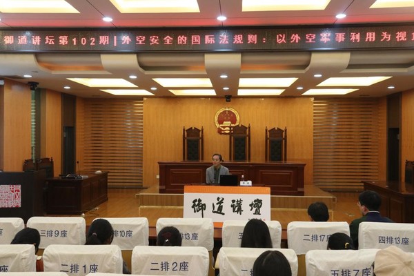 11月6日晚上七点,我校第102期御道讲坛暨第19期人文大讲堂在江宁校区人文与社会科学学院模拟法庭举办。本次讲坛邀请到北京师范大学法学院副院长李滨教授。李教授以“外空安全的国际法规则:以外空军事利用为视角”为主题给同学们和老师们带来了一场精彩的讲座。