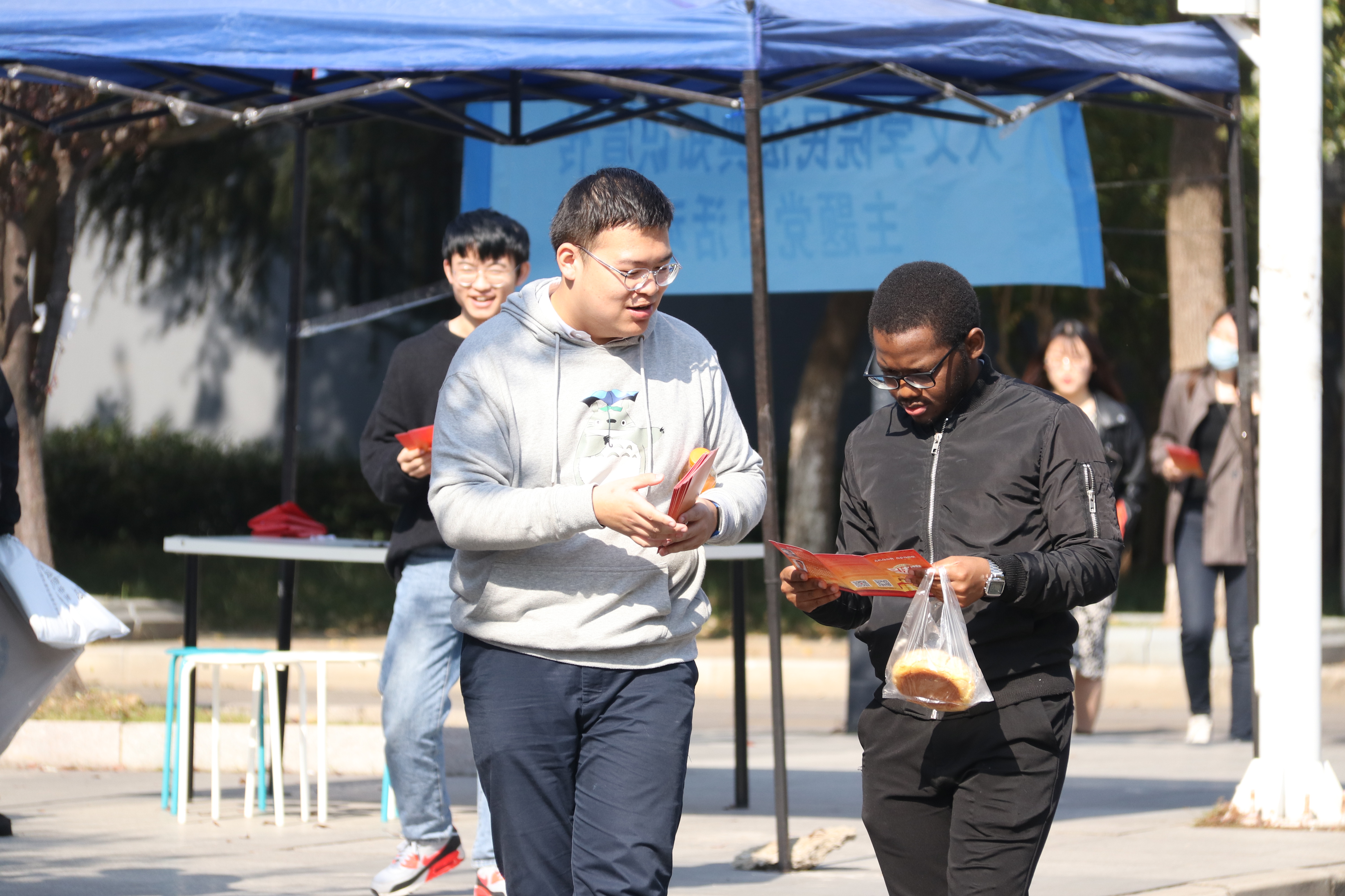 与此同时,为了加强南航学子对于民法典的了解,提高维权意识,树立法制观念,人文院学生党总支结合热点设计制作了民法典知识宣传手册,并于 11月 13日中午在馨园食堂和学生宿舍开展了普法宣传活动。
