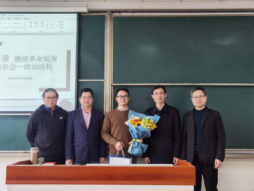 3月15日上午,人文与社会科学学院新教师“第一堂课”引荐仪式在将军路校区东区D3309教室举行,学院党委书记刘虎、院长王建文、副院长施向峰、公共管理系主任鲁兴虎老师参加了仪式,庆祝新教师田鹏老师第一次走上讲台。