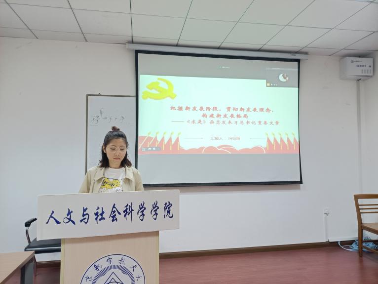 首先,冯钰笛同学重点围绕“准确把握新发展阶段”“深入贯彻新发展理念”和“加快构建发展新格局”三个部分,分享了自己学习习近平总书记在省部级主要领导干部学习贯彻党的十九届五中全会精神专题研讨班上的讲话《把握新发展阶段,贯彻新发展理念,构建新发展格局》的心得体会。