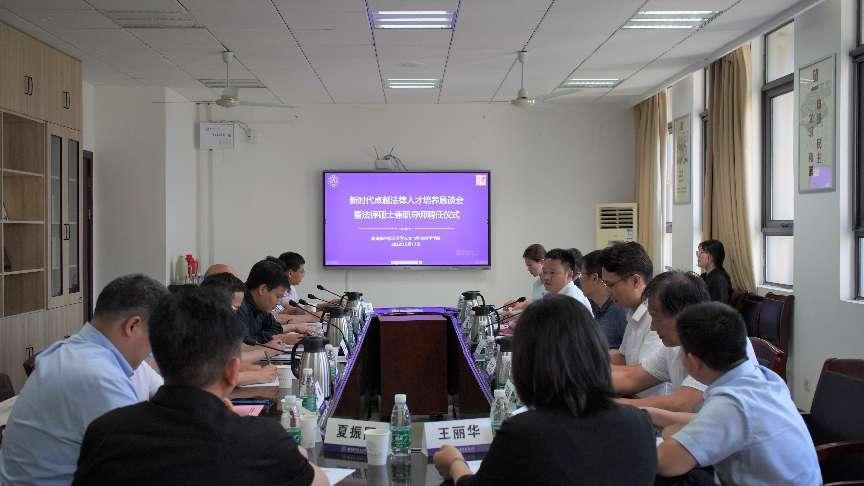 6月17日下午,耽美漫画 召开新时代卓越法律人才培养恳谈会暨兼职导师聘任仪式。来自江苏省高级人民法院、江苏省法学会、南京市台办、南京市建邺区人民法院、南京市江宁区人民检察院、南京市秦淮公安分局、江苏中虑律师事务所、江苏昊程昊律师事务所、江苏润国律师事务所、江苏聚能科技投资发展有限公司等单位的专家参加本次恳谈会和兼职导师聘任仪式。学院党委书记楚广兴、院长高志宏、副院长茅晓嵩、法律硕士中心副主任张鸣胜、法律硕士办公室主任刘耀彬、法律系王炳教授、马荣春教授等参会,会议由高志宏主持。