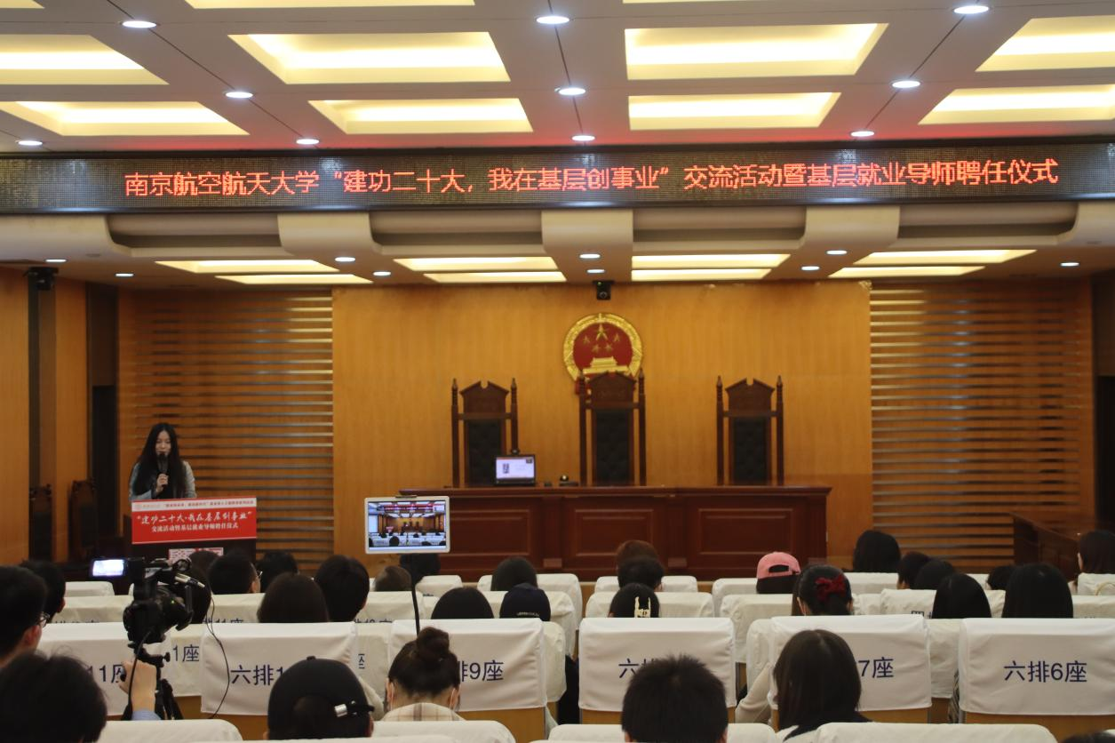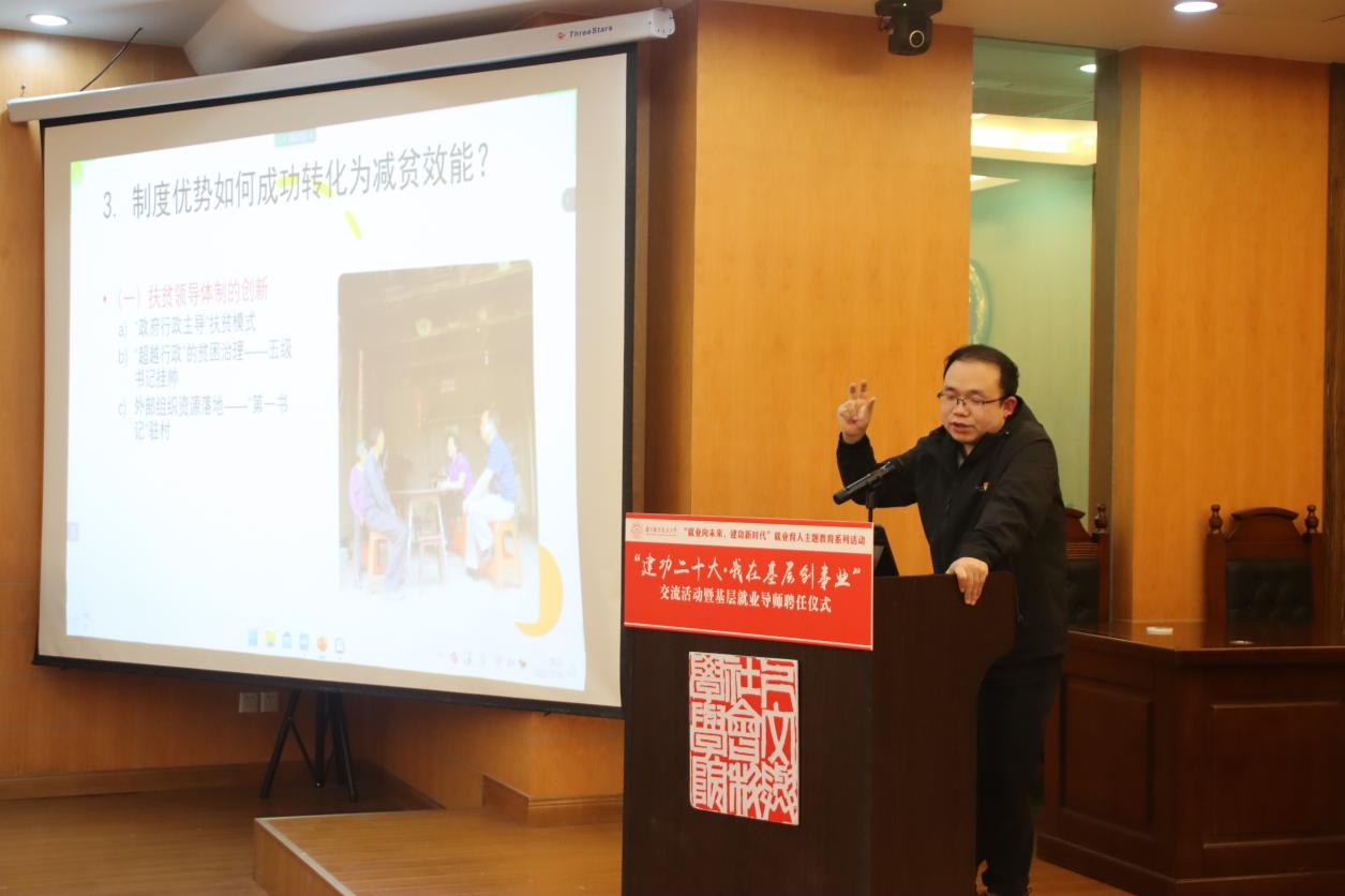 11月18日下午,由校大学生就业创业指导服务中心主办,人文与社会科学学院承办的“建功二十大·我在基层创事业”交流活动暨基层就业导师聘任仪式在人文与社会科学学院模拟法庭顺利开展。(作者:聂小芳;供图:胡梦兰)