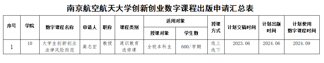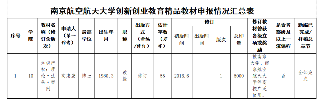 人文学院关于南京航空航天大学创新创业教育精品教材、案例库和数字课程申报情况的公示