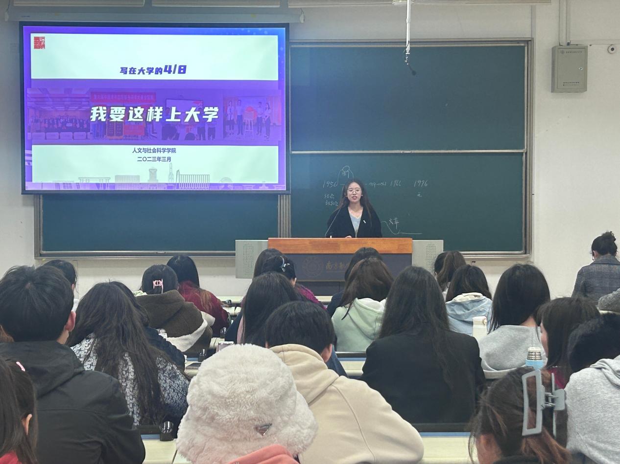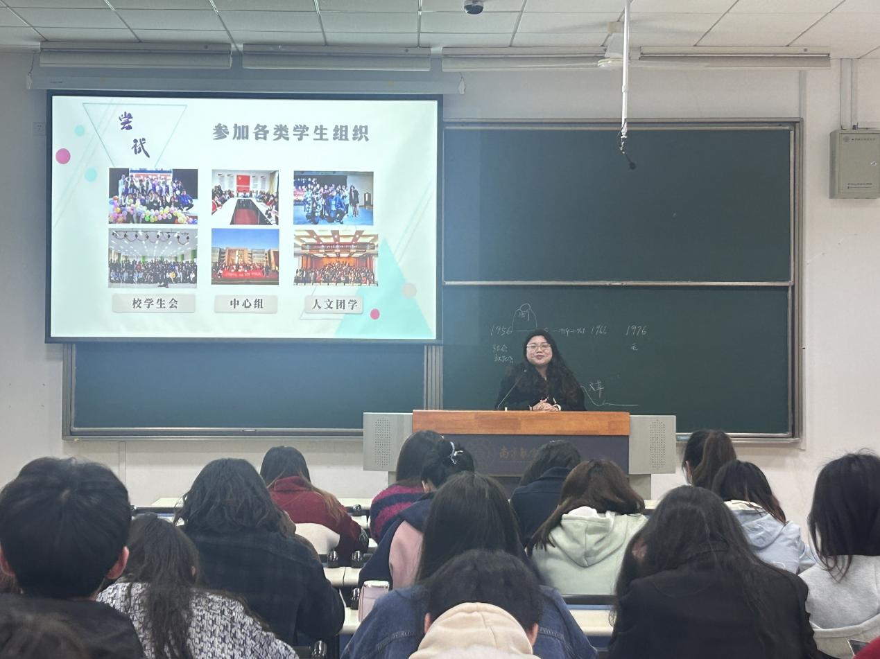 会上,辅导员聂小芳以《“当科学家”还是你的梦想吗?》文章为引,从“会良师”“交益友”“求真知”“成大我”四个方面为同学们分享自己对大学生活的理解。在“会良师”模块,聂小芳从吴继周、范绪箕两位老一辈南航人的故事出发,鼓励同学们要珍惜当下,爱师敬师,多向身边的良师学习请教;在“交益友”环节,聂小芳回顾了2021级学生入学以来相知相伴的点滴记忆,并从自身校园成长经历出发鼓励同学们敢于挑战自我,突破舒适圈;在“求真知”模块,她结合大学学习的自主性、专业性、合作性、开放性四个特点,引导同学们积极思考学习的方向与意义;在“成大我”环节,聂小芳详细梳理大学的几个重要时间节点,总结出大学努力的9个方向,并邀请思政辅导员赵芹做《大学关键词》主题分享,鼓励同学们查漏补缺,勇敢追梦。