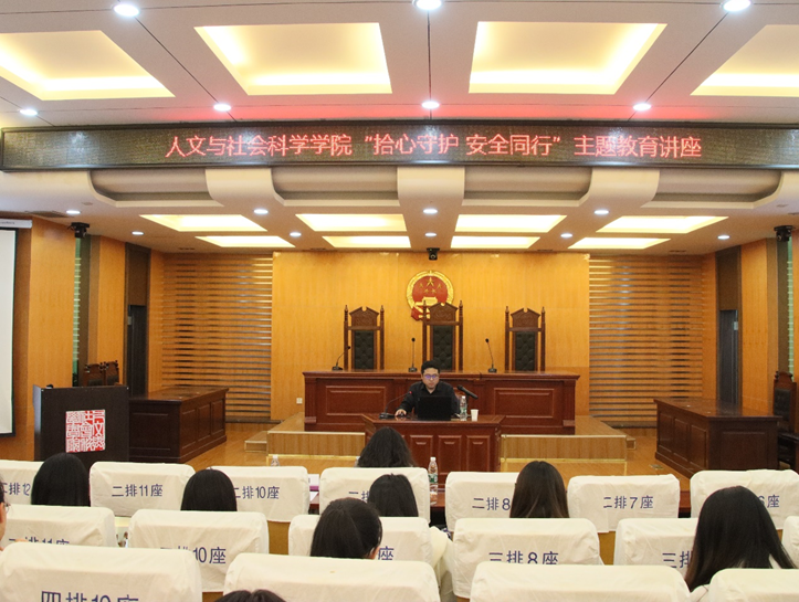 5月11日晚,耽美漫画 在模拟法庭开展 “拾心守护,安全同行”主题教育讲座,邀请保卫处治安管理科科长黄超峰、学院公共管理系教师王媛担任主讲嘉宾,各年级学生干部、寝室长参加了讲座。