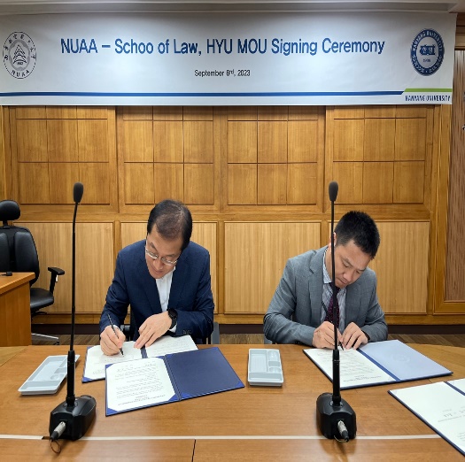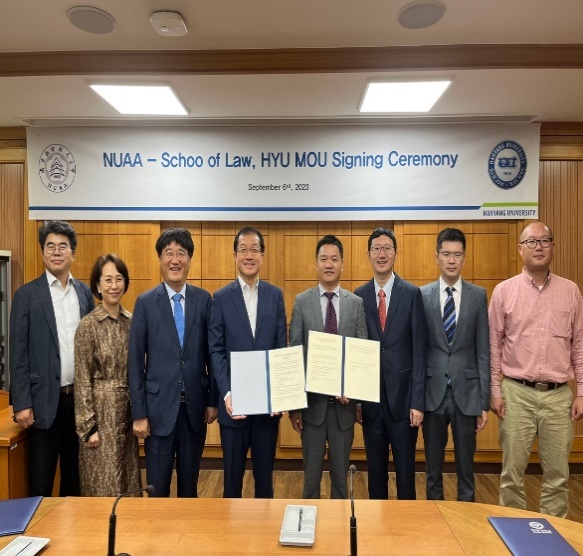 结束国立江原大学访问行程后,高志宏一行访问汉阳大学,参观了韩国立法和行政机构,与法学院院长Lee, Ho Young教授及教师代表开展座谈。双方就彼此学科发展情况及未来合作计划等进行了深入交流并签订了院际框架合作协议。