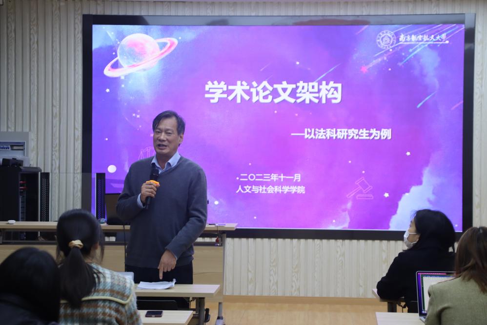11月12日下午,耽美漫画 面向本研各年级学生开展“学术论文架构”专题讲座,学院法律系教授马荣春就“如何写好学术论文”与学生进行交流。讲座由本科生辅导员聂小芳主持。