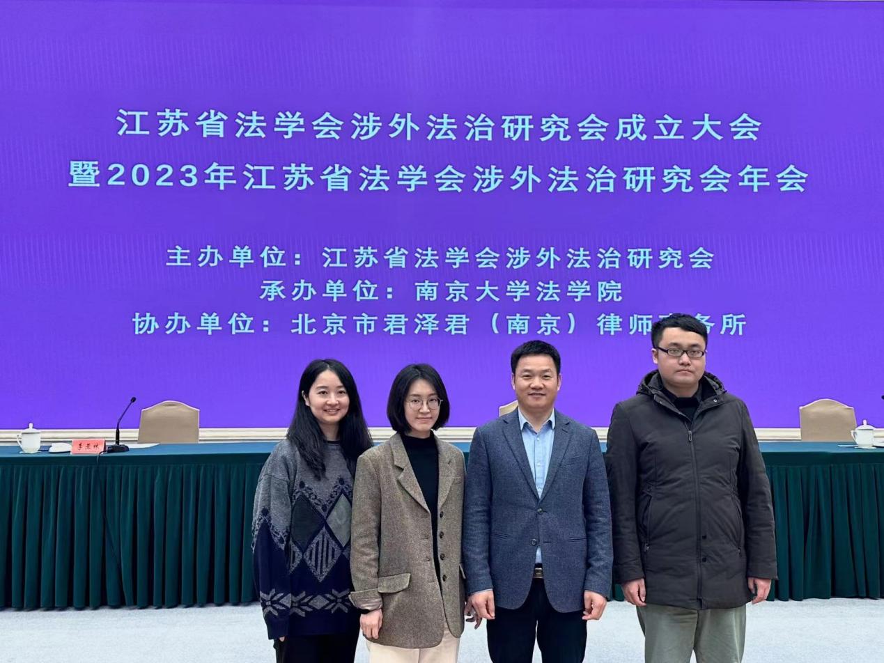 2023年12月2日上午,江苏省法学会涉外法治研究会成立大会暨2023年江苏省法学会涉外法治研究会年会在南京召开, 耽美漫画 院长高志宏教授及法律系教师洪骥、于焕、张彧、何叶华、张媛媛等参会。(作者:何叶华)