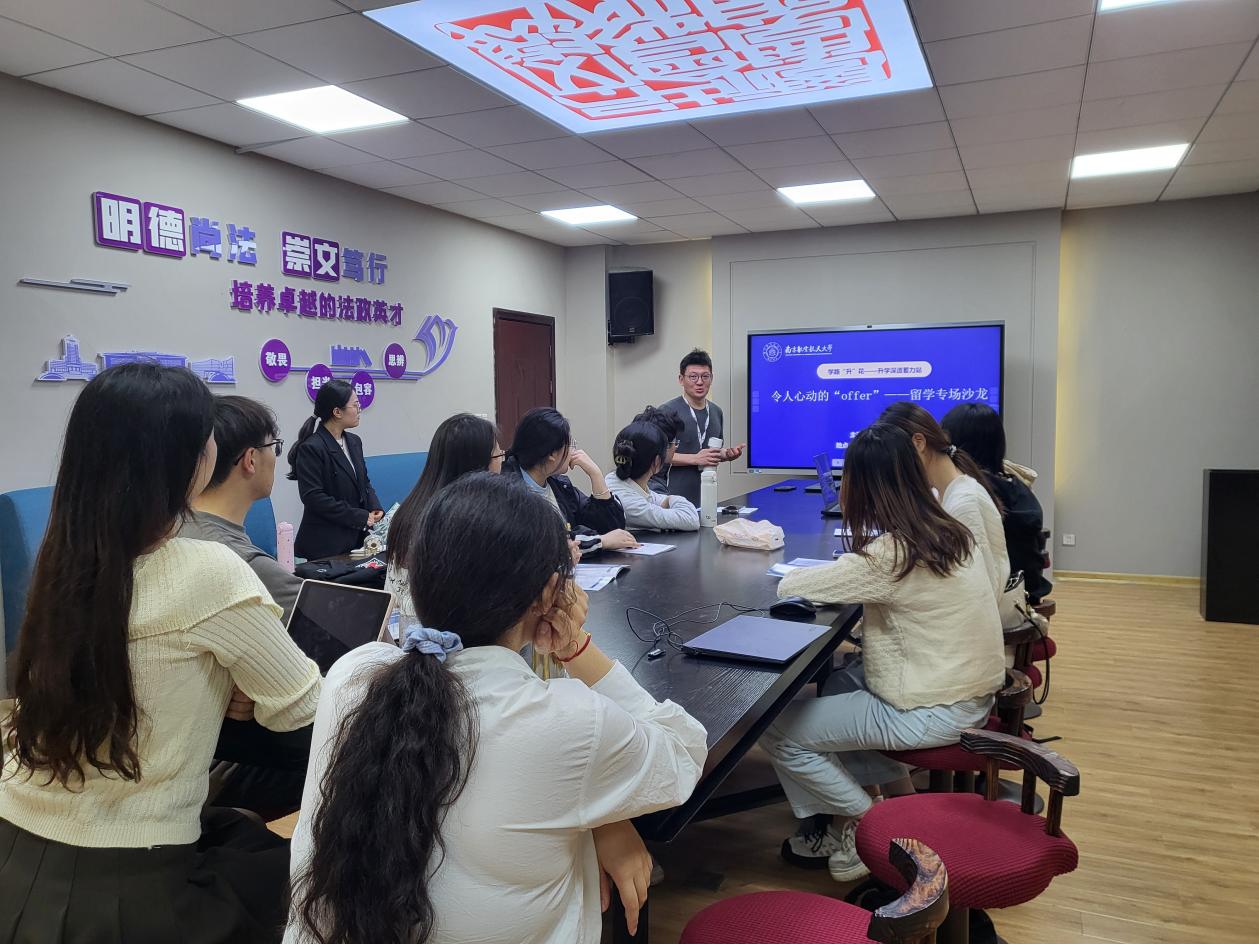 4月15日,学路“升”花——令人心动的“offer”留学专场沙龙在耽美漫画 104沙龙室开展。本次沙龙的主讲人是我校经济与管理学院博士、锦天城律所金融非诉组实习律师周魏魏。本次活动由本科生辅导员聂小芳主持。