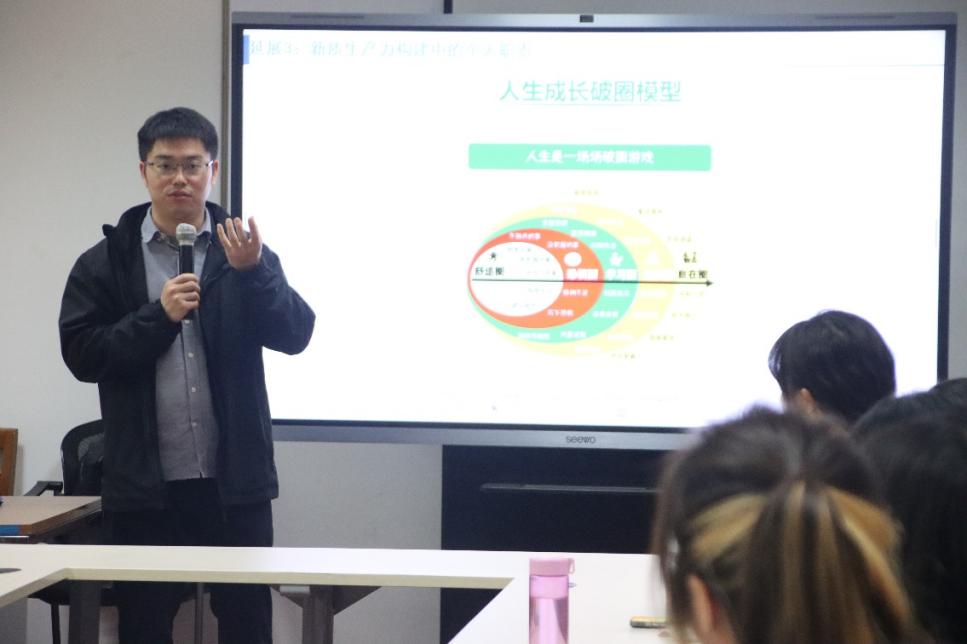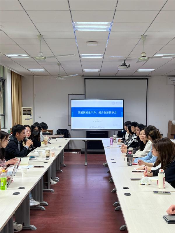 为引导学生党员深刻把握时代脉搏,理解高质量创新人才内涵,提高自身领导力,4月11日下午,我院以“发展新质生产力,提升创新领导力”为主题,在210党员活动室召开第四期学生党总支“红心领航”思享会。经济与管理学院副教授丰超担任主讲嘉宾,解读新质生产力与领导力之间的关系。本研辅导员、2023级硕士第一党支部及学生骨干代表参加会议。