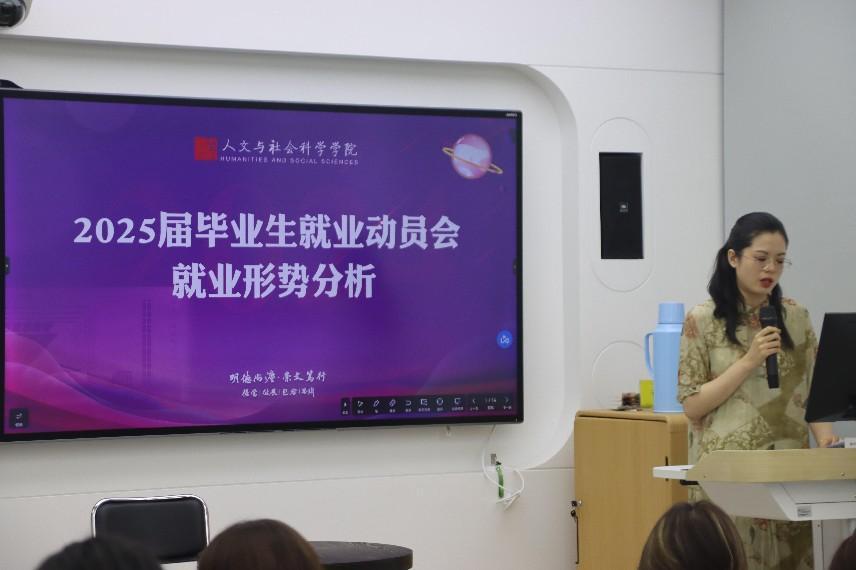 9月14日,我院在院楼213智慧教室举办“就业助航,筑梦未来”2025届毕业生就业动员会。校就业创业指导服务中心老师张月铭、研究生辅导员施俞辛、本科生辅导员聂小芳及2025届本研毕业生参与本次会议。
