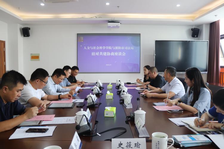 9月23日,我院与溧阳市司法局在天目湖校区综合服务楼204会议室召开结对共建协商座谈会。溧阳市司法局局长葛军伟、副局长陈靓、公共法律服务中心主任王莹,南京航空航天大学天目湖校区党工委书记王伟华、我院党委书记楚广兴、天目湖校区管委会副主任潘顺荣、我院法律系教师郭莉、郑文革参加了座谈会。座谈会由楚广兴主持。