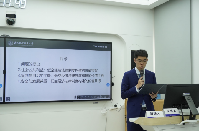 青年论坛由聂明岩副教授主持。江苏昊程昊律师事务所许冠中律师探讨法治建设助力低空经济,提出城市分区试点获取经验的思路;郑文革老师强调低空飞行监管立法的核心地位;张彧老师建议低空经济立法采用促进法模式;孙悦老师分析民航业数据确权相关内容为民航数据管理提供法治支撑;马克思主义学院博士研究生张延书从价值体系层面剖析低空经济法律制度建设矛盾并提出借助新兴技术实现柔性智能监管以推进低空经济有序利用,为其制度构建提供价值导向。