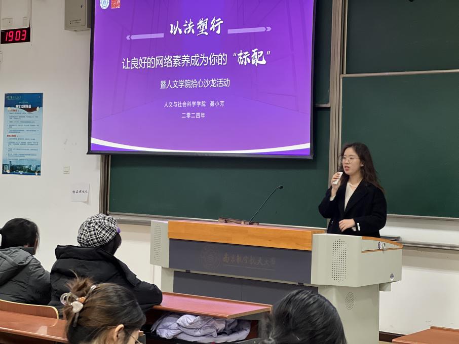 12月19日,我院在D3216开展“以法塑行:让良好的网络素养成为你的‘标配’”专题月讲评,全体2022级本科生参加,月讲评由本科生辅导员聂小芳主持。
