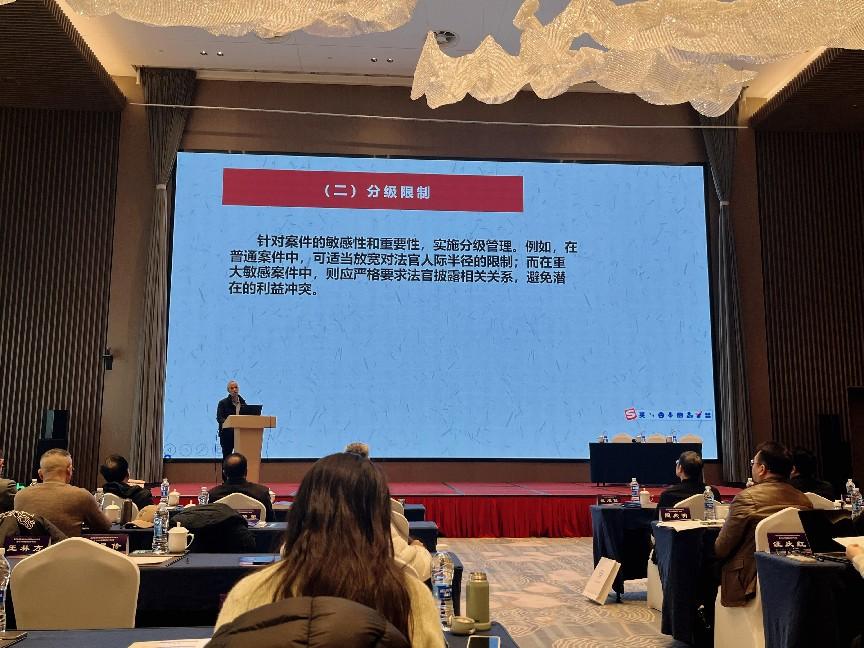 由浙江省法学会法治文化研究会主办,浙江财经大学法学院、浙江省地方立法与法治研究院(智库)承办的“基层司法理论与实践研讨会”暨2024年学术年会于2024年12月14- 15日在海宁市浙江太平洋大酒店召开,我院法律系李可教授应邀参会。李可教授提交了题为《论法官的人际半径》的论文并作主题发言。
