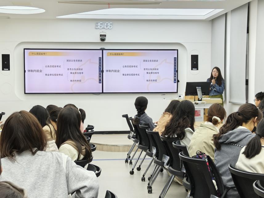 3月27日下午,“逐梦基层储能站——体制内就业通关策略”讲座在我院213智慧教室开展。公考资深讲师徐倩受邀主讲。本次活动由辅导员聂小芳主持。