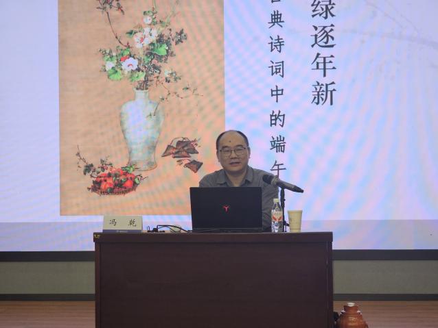 冯乾从端午节的释名、起源与习俗和历史上的端午诗词书写入手来解析端午节的民俗特征与文化内涵。他从诗词鉴赏的角度带领大家触摸历史温度,在端午文化寻根中感受家国情怀,并带领大家从新时代青年的视角激活中国文化的符号密码、感悟古典诗词中的独特意象。