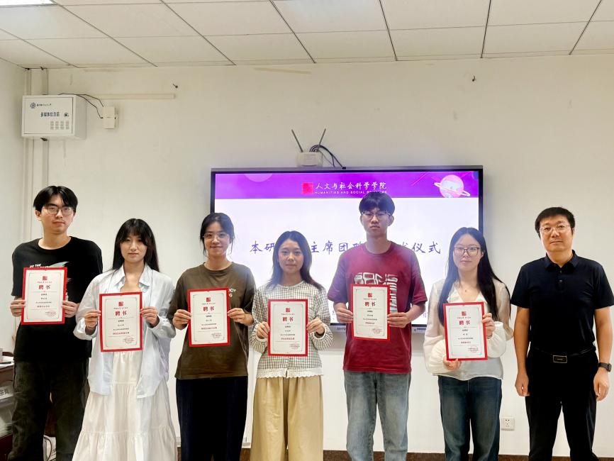 在随后举行的本研新任主席团聘任仪式上,楚广兴为院学生会、研究生会主席团成员代表颁发聘书。