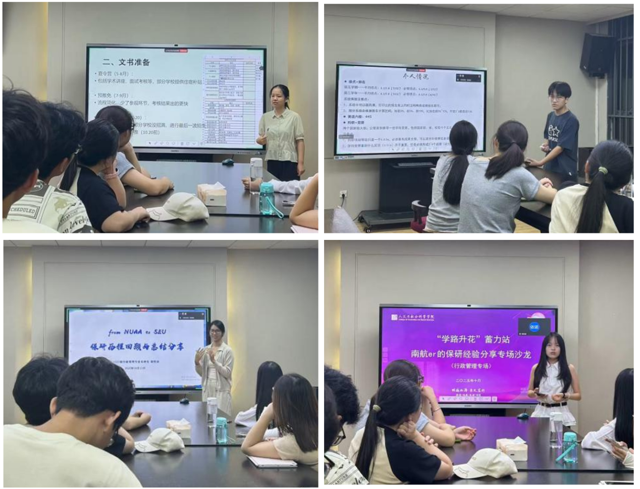 10月11日,“‘学路升花’蓄力站——保研经验分享沙龙(行政管理专业专场)”在我院院楼104沙龙室顺利举办。四位顺利推免的行政管理学子担任主讲人,给在场同学带来干货满满的经验分享。
