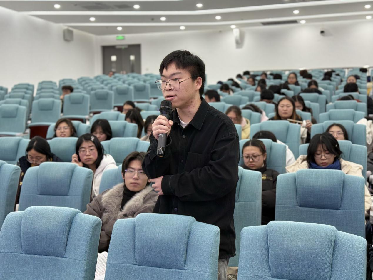 在自由交流环节,同学们踊跃提问,现场气氛热烈。嘉宾就职业选择、实习准备、学历提升、行业竞争等话题与同学们展开互动,耐心解答大家的困惑,并鼓励同学们保持学习热情,坚守专业初心。