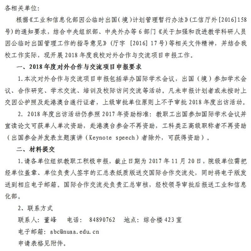 【国际合作交流处】关于制定2018年对外合作与交流计划的通知