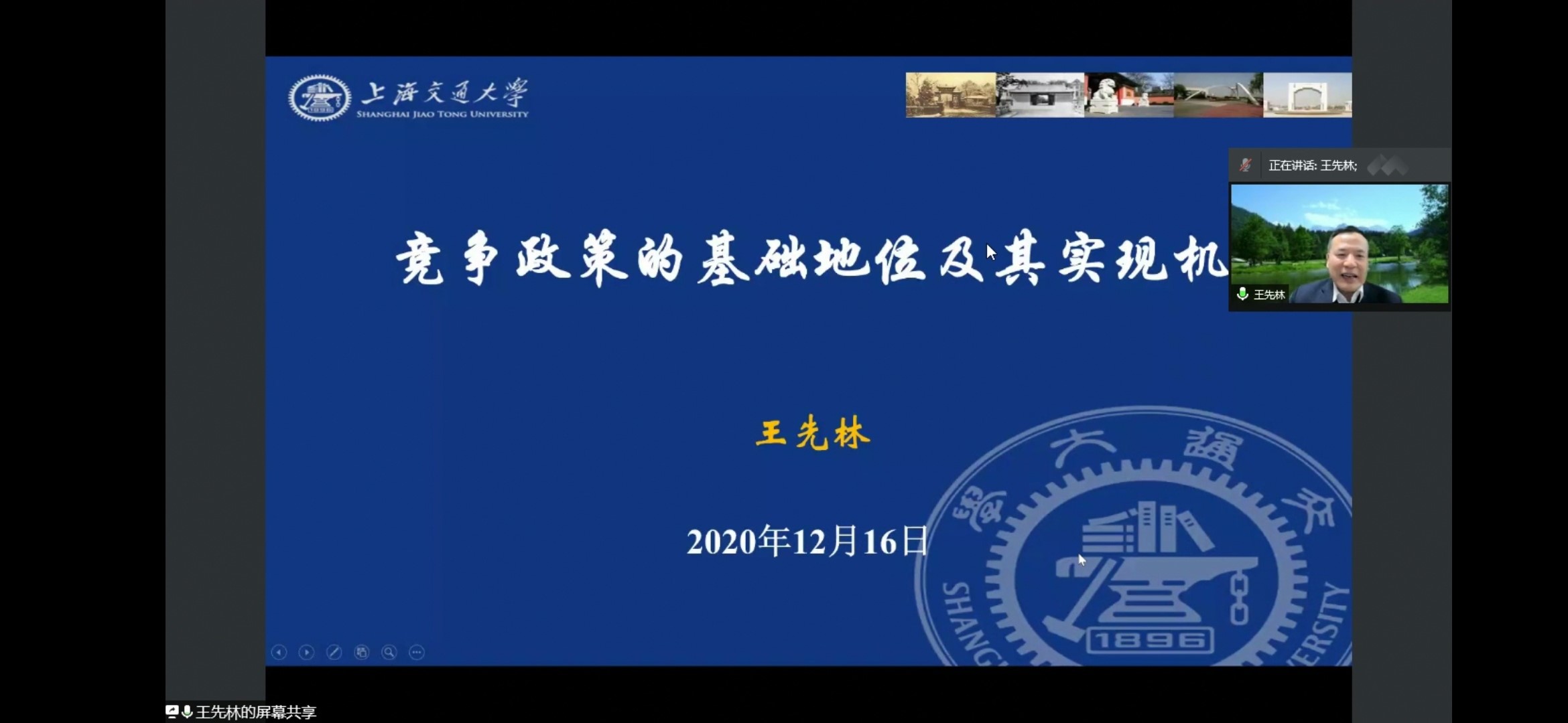 2020年12月16日晚,南京航空航天大学第24期“人文大讲堂”在线如期举行,上海交通大学特聘教授、博士生导师、法学院经济法学科带头人王先林教授受邀开讲。讲座由人文与社会科学学院法学学科负责人王炳教授主持,中国政法大学民商经济法学院张春丽副教授、南航人文与社会科学学院窦正斌副教授参加本次讲座,学院150多名本科生、研究生参与了此次活动。