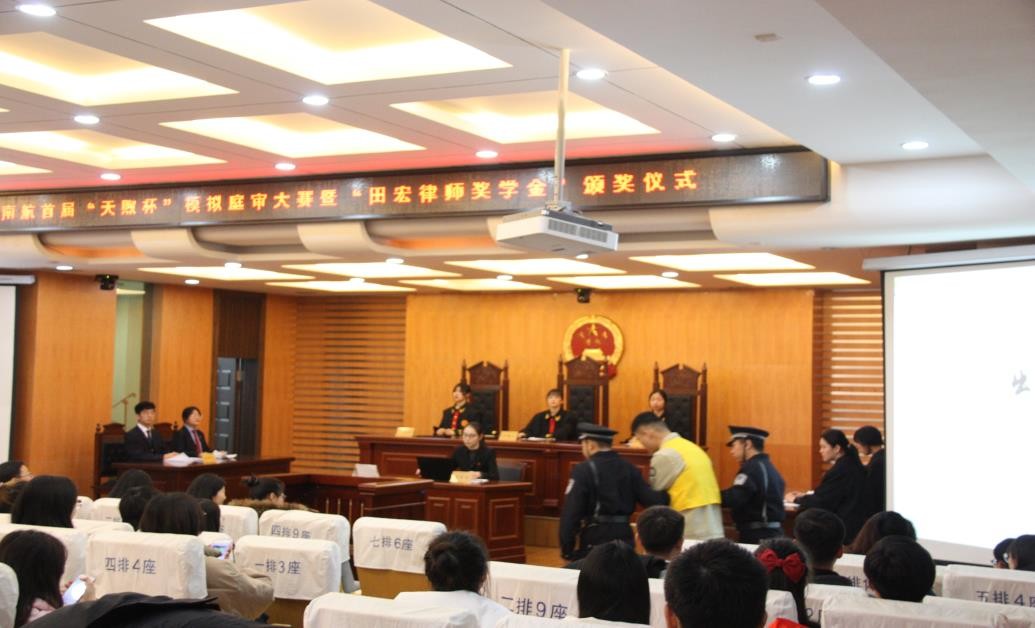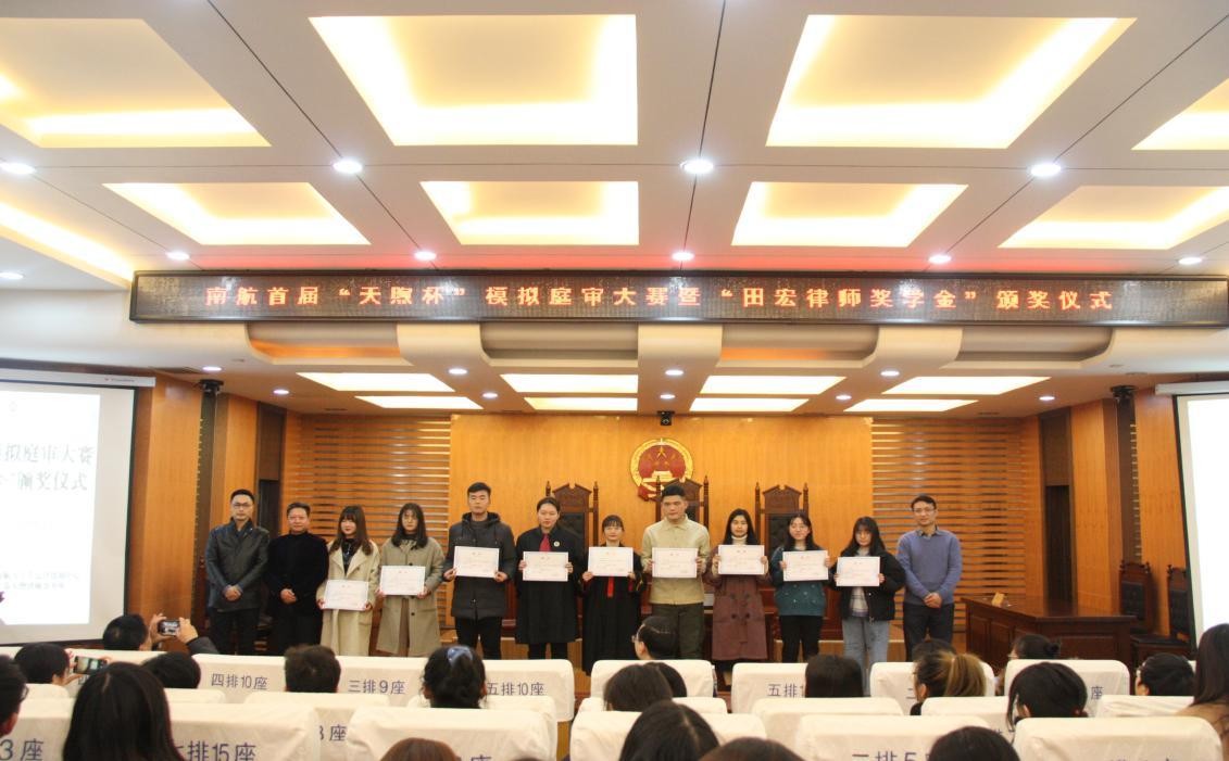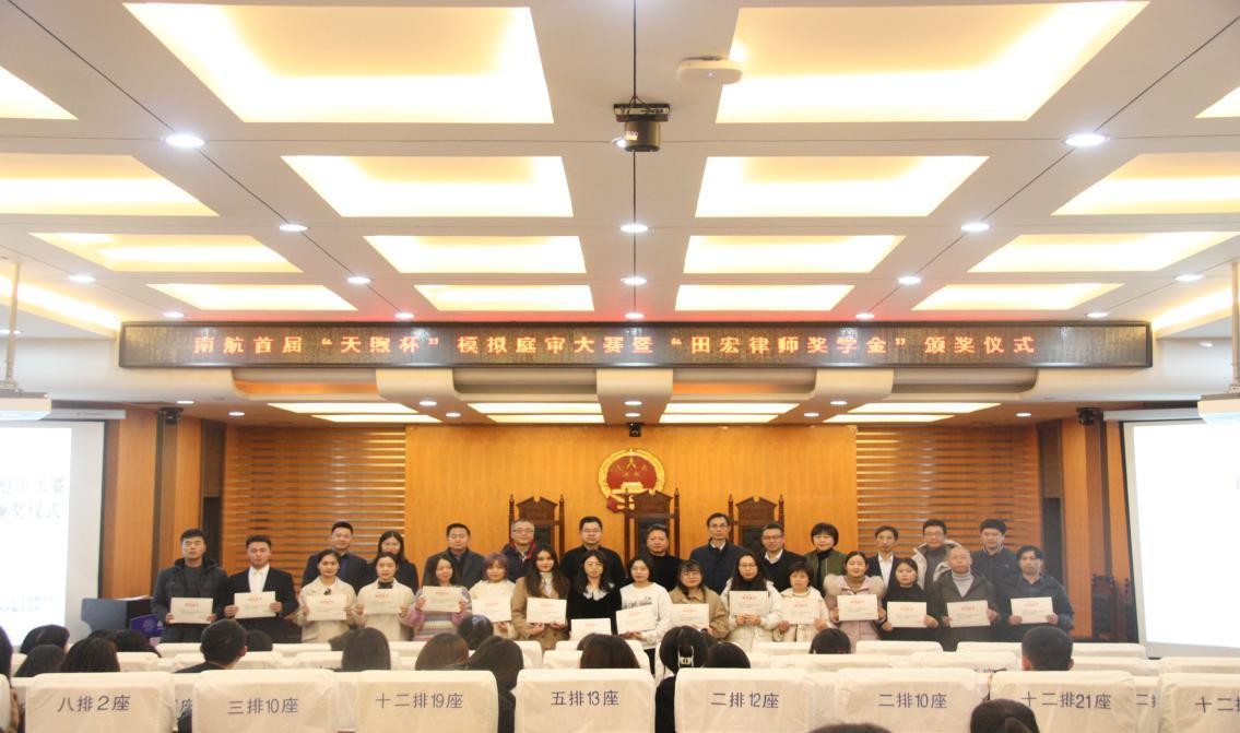 12 月 23 日下午,南航首届“天煦杯”模拟庭审大赛暨“田宏律师奖学金”颁奖仪式于模拟法庭隆重举行。本次活动由我院主办,校大学生法律援助中心承办,江苏天煦律师事务所参与协办。江苏天煦律师事务所主任田宏等,校党委宣传部、学生处、研究生院、校团委及我院部分领导、老师出席比赛。18 级法学本科生、20 级法律硕士研究生代表参加模拟庭审比赛决赛,全校部分师生到场观看比赛。