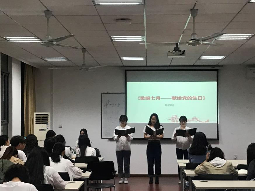 “我们是七月的孩子,永远记得自己的生日,我们的七月,踏上拼搏的路,高擎奋进的大旗,唱响奉献的组歌……”18级法班的同学们以诗歌朗诵《歌唱七月——献给党的生日》作为开场,声情并茂地讲述了党的创建,再现了中国共产党带我们走出枪林弹雨、走过时代峥嵘、奔向时代高峰的那段岁月。