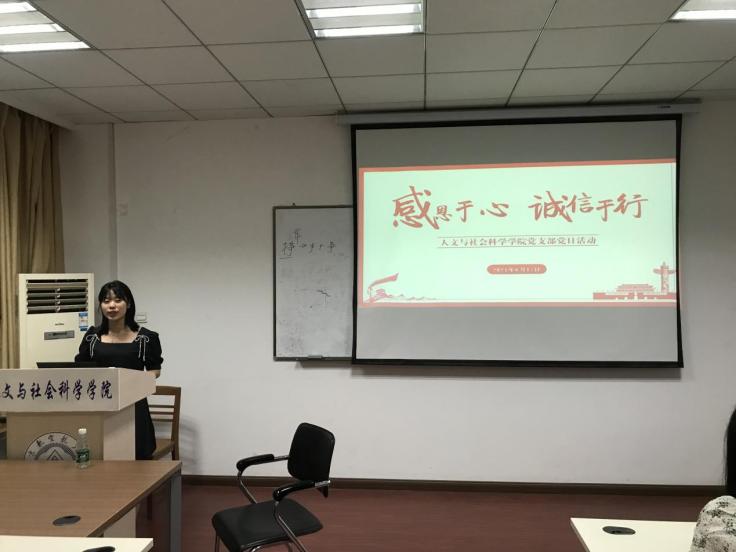 6月17日,人文与社会科学学院本科生党支部以“感恩于心,诚信于行”为主题,结合中国共产党改革开放时期、十八大以来历史时期的党史,开展了“感恩于心,诚信于行”主题党日活动。支部党员、发展对象和入党积极分子参与了活动。