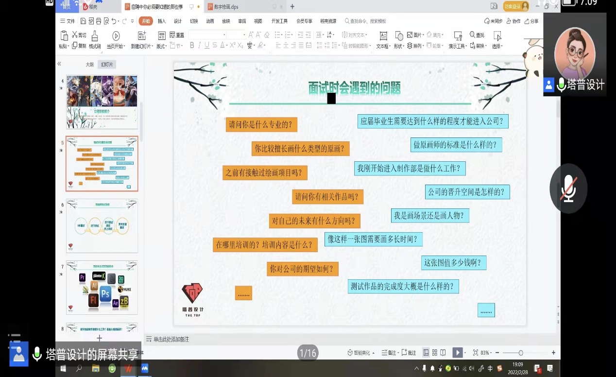 3月4日晚19:00,我院职业规划主题讲座《应聘中你必须要知道的那些事》在腾讯会议平台如期举行。本次讲座邀请到了南京塔普因趣网络科技有限公司总经理、资深动画原画师张彤老师作为主讲人。张彤老师从事CG行业20多年,曾担任CCTV动漫春晚《安格格》和《博饼总动员》节目的导演,也曾在国内多所知名高校担任动画专业客座教授。张彤老师以“应聘中你必须要知道的那些事”为主题,围绕公司面试应聘时的相关注意点与同学们展开分享。会议由辅导员聂小芳主持。