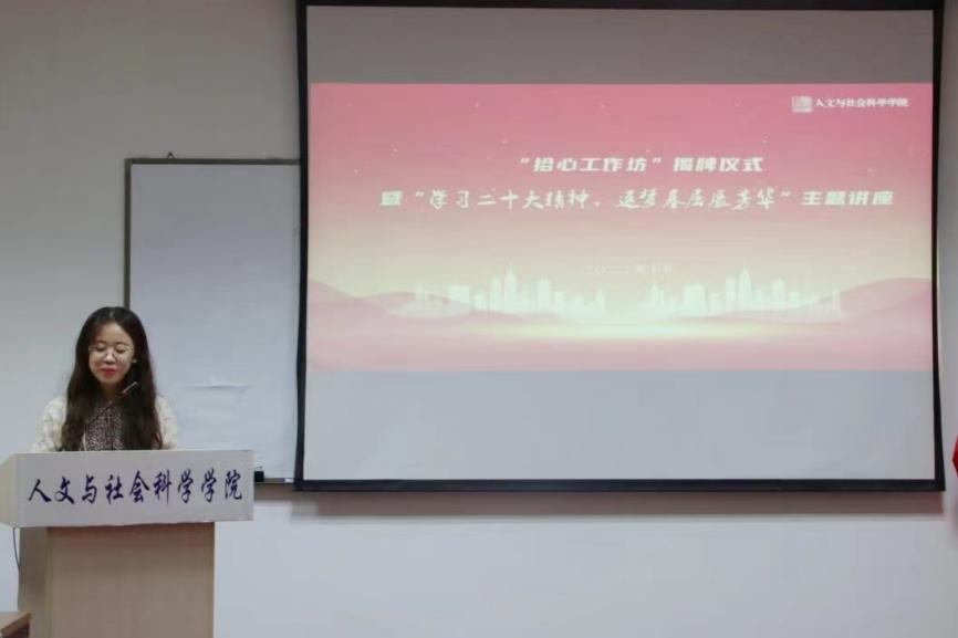 10月26日下午,我院在党员活动室举办了“拾心工作坊”揭牌仪式暨“学习二十大精神,逐梦基层展芳华”主题讲座。院长高志宏、院党委副书记刘思辰、院教学督导组成员邱建新及院团委书记赵燕喃、辅导员孙长胜、聂小芳参加了活动。活动由聂小芳主持。(文:王巧晴、施俞辛;图:夏梦琳、施俞辛)