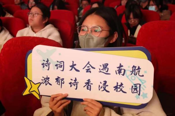 在深入学习贯彻党的二十大精神,庆祝南航建校70周年之际,此次诗词大会着眼二十大报告中的关键内容,献礼70周年华诞,不仅是一场“诗词会”,更是一场二十大精神的“学习会”,点燃了美丽的南航校园。以诗为笔,以词为墨,坚定不移听党话、跟党走,相信所有同学未来不止在诗词的舞台上,也会在学习的舞台上、科研的舞台上、人生的舞台上继续挥斥方遒,绽放光彩!