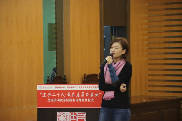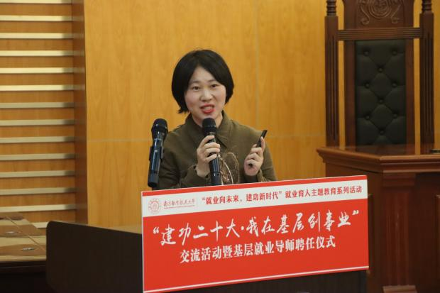 11月18日下午,由校大学生就业创业指导服务中心主办,人文与社会科学学院承办的“建功二十大·我在基层创事业”交流活动暨基层就业导师聘任仪式在人文与社会科学学院模拟法庭顺利开展。(作者:聂小芳;供图:胡梦兰)