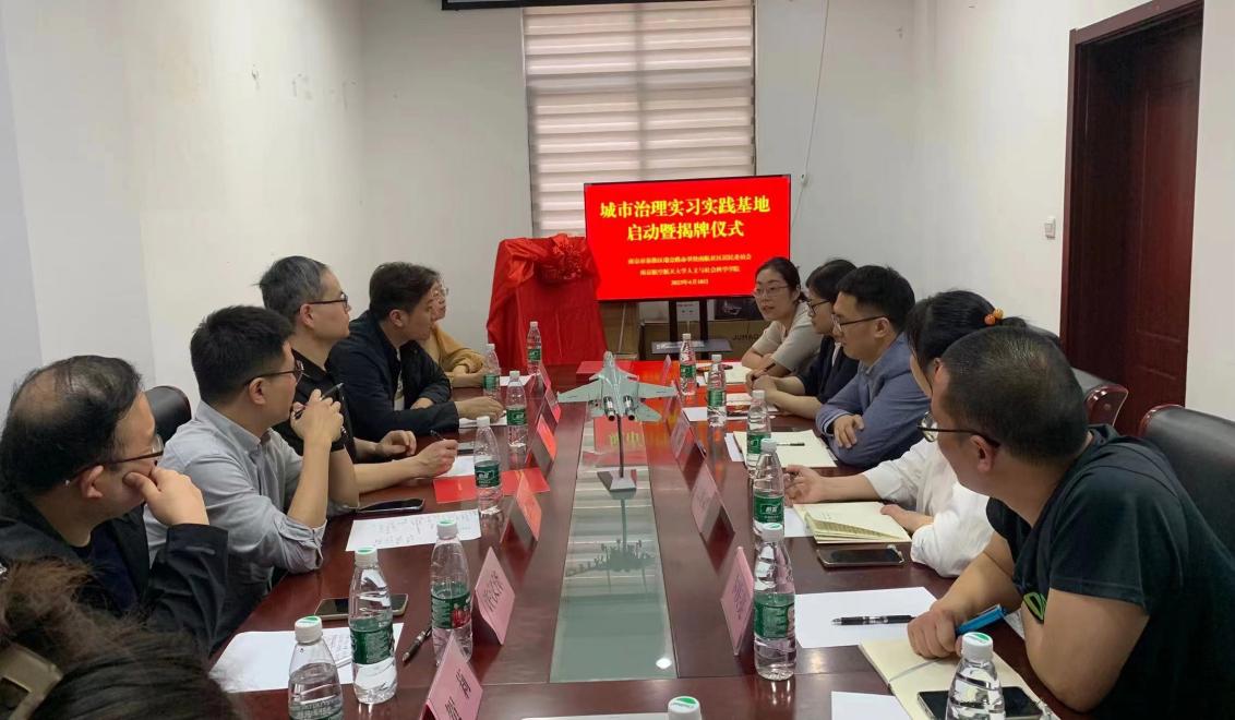 4月18日下午,大学生实习实践基地启动暨揭牌仪式在南航社区居民委员会举行。副院长施向峰、院长助理武小龙、公共管理系主任沈广和、公共管理系党支部书记许汉泽、公共管理系教师代表王媛和贺莉,学生代表高逸菲、董若昭等,南航社区居民委员会党支部书记颜臻,社区干部王洋、吉婷婷、朱琳、卞庆亮等参加了会议。