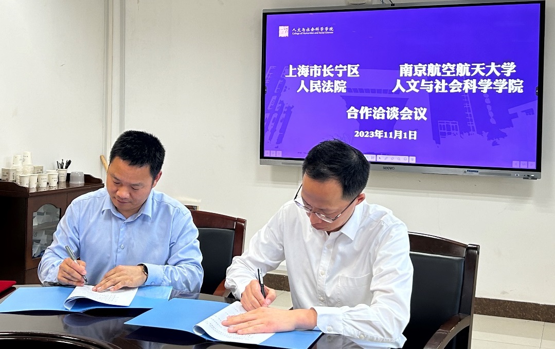 2023年11月1日下午,上海市长宁区人民法院副院长王飞、副院长沈建坤、审判监督庭(研究室)庭长卫晓蓓、未成年人与家事案件综合审判庭庭长顾薛磊、民事审判庭庭长陈宇琦及政治部干警王黎圆等一行来我院交流并签署合作协议。院党委书记楚广兴、院长高志宏、院党委副书记刘思辰、副院长施向峰、副院长茅晓嵩、法律系主任王文军、院长助理聂明岩及航空法教学与研究团队成员参加了交流。
