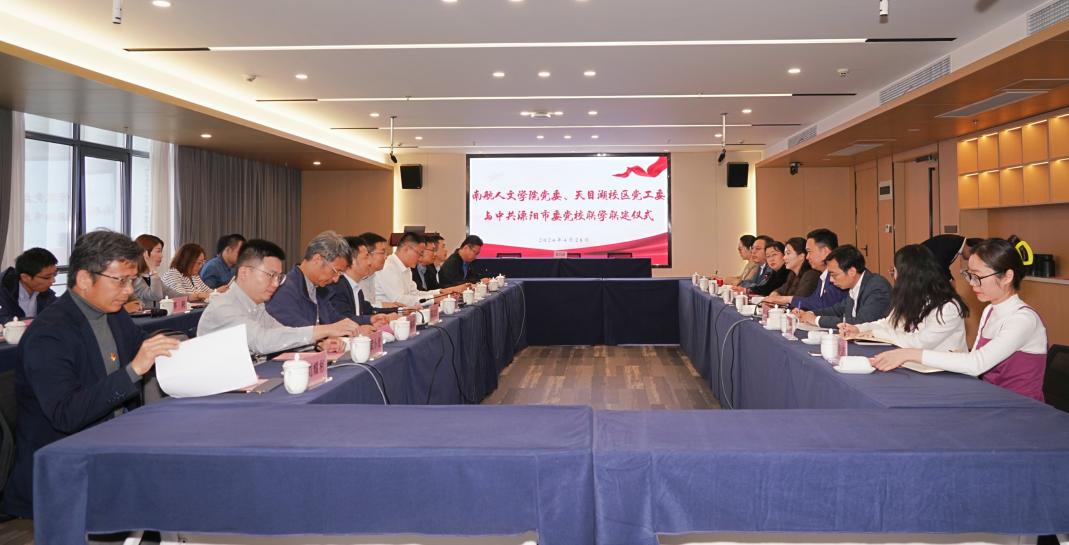 4月28日,学院党委与天目湖校区党工委、中共溧阳市委党校开展联学联建活动,深入学习贯彻习近平总书记关于党纪学习教育的重要讲话和重要指示精神,推动党建引领高质量发展。学院党委理论学习中心组成员、校区党工委理论学习中心组成员及师生党支部记、相关部门领导参加了学习。会议由溧阳市委组织部副部长、市委党校常务副校长陶华美主持。