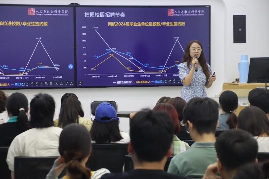 9月14日,我院在院楼213智慧教室举办“就业助航,筑梦未来”2025届毕业生就业动员会。校就业创业指导服务中心老师张月铭、研究生辅导员施俞辛、本科生辅导员聂小芳及2025届本研毕业生参与本次会议。