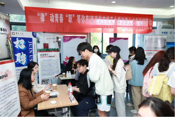 为促进法学专业学生高质量就业,进一步搭建校企合作桥梁,3月26日,我院联合秦淮区司法局、秦淮律协举办“律”动青春·“职”等你来——南京航空航天大学法律人才专场招聘会。本次招聘会共有来自秦淮区的7家律所参加,为本研法学专业学生提供就业实习岗位。