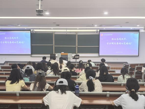 5月30日,我院在天目湖校区T1307教室召开“稳心态提效率,守护期末备考心灵绿地”2024级本科生主题月讲评,月讲评由本科生辅导员安洪文主讲。