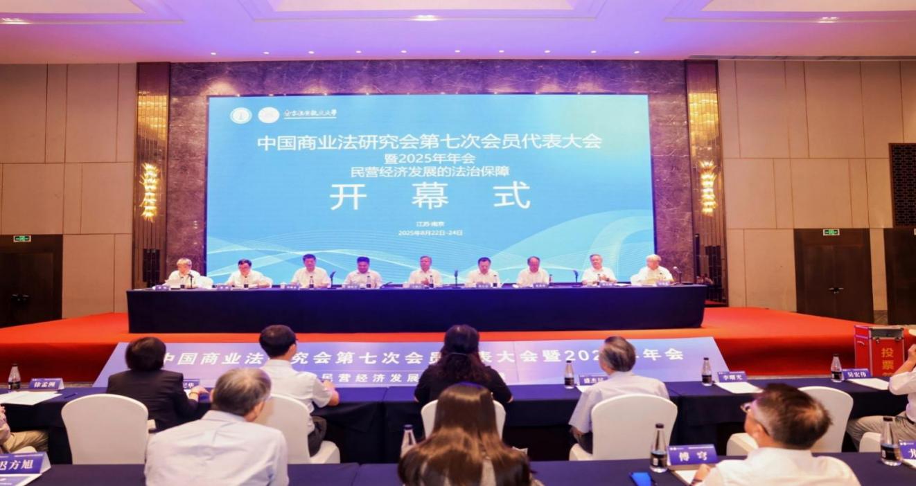 8月23日-24日,由中国商业法研究会主办,我院承办的中国商业法研究会第七次会员代表大会暨2025年年会在南京召开。中国法学会党组成员、副会长王振江,最高人民法院党组成员、副院长贺小荣,商务部党组成员、副部长、直属机关党委书记盛秋平,江苏省高级人民法院党组书记、院长夏道虎,浙江省高级人民法院党组书记、院长、中国商业法研究会第七届理事会会长李占国,江苏省法学会会长周继业,我校校长姜斌出席开幕式。370余位专家学者、实务工作者出席年会,围绕“民营经济发展的法治保障”主题展开了广泛的交流与研讨。