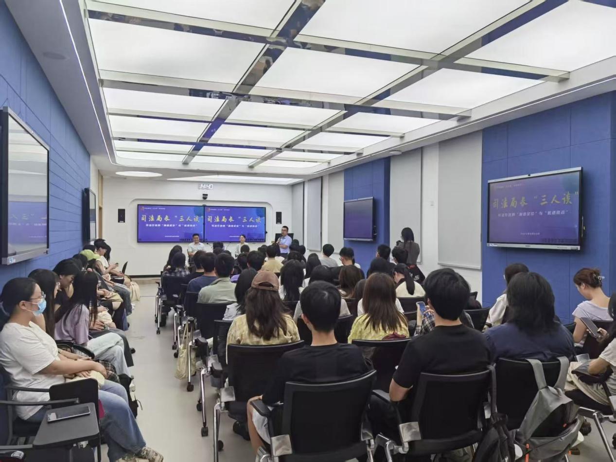 为帮助人文学子增强专业认知,明晰司法行政领域职业方向,科学规划未来发展,9月28日,我院在院楼213智慧教室开展职业规划“三人谈”品牌活动。南京市浦口区司法局党组书记聂济松、江宁区司法局副局长赵伟受邀到场,结合一线工作经验解读司法行政的“角色定位”与“机遇挑战”,并与同学们进行互动交流。活动由法律系副主任陈苏豪主持。